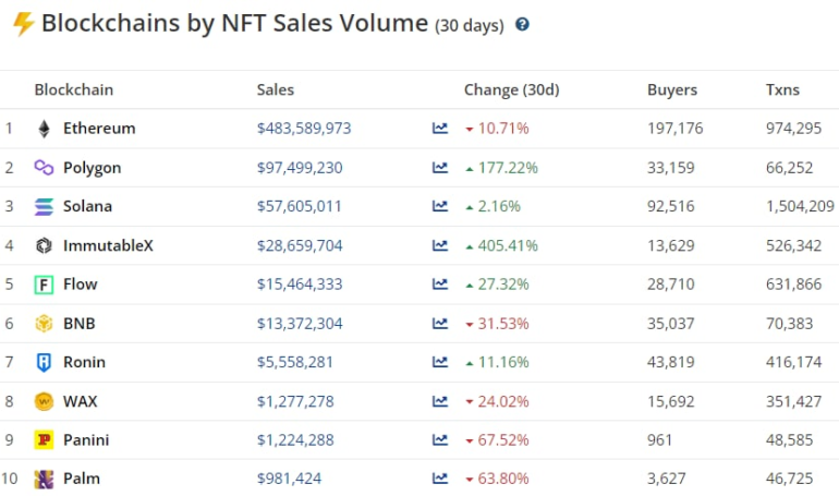 Over the past 30 days, Polygon have seen over $97M in NFT sales volume, positioning it as the 2nd biggest NFT blockchain, with over 20% of Ethereum's NFT sales volume.Data…