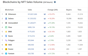 While Ethereum NFT sales volume drops by 33.4%, ImmutableX's goes up by 97% over the past 24 hours, surpassing $1.2M USD.Data by @cryptoslamio. pic.twitter.com/8xmHGvkq6T Over $100M Stolen in NFT Scams…